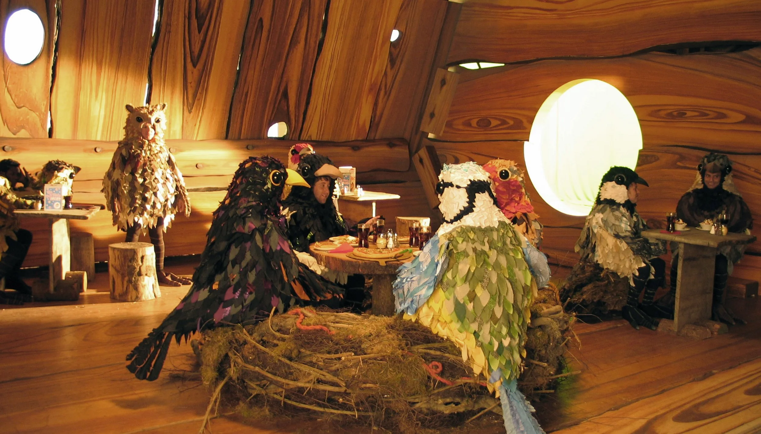 An over scaled birdhouse, that serves pizza, to men dressed as garden birds.... Nothing quite like an Old School British commercial. Set was built on stage at Shepperton, by the Gene D'Cruze. Scenic painting care of Andrew Garnet-Lawson, back when green screen didn't really exist!